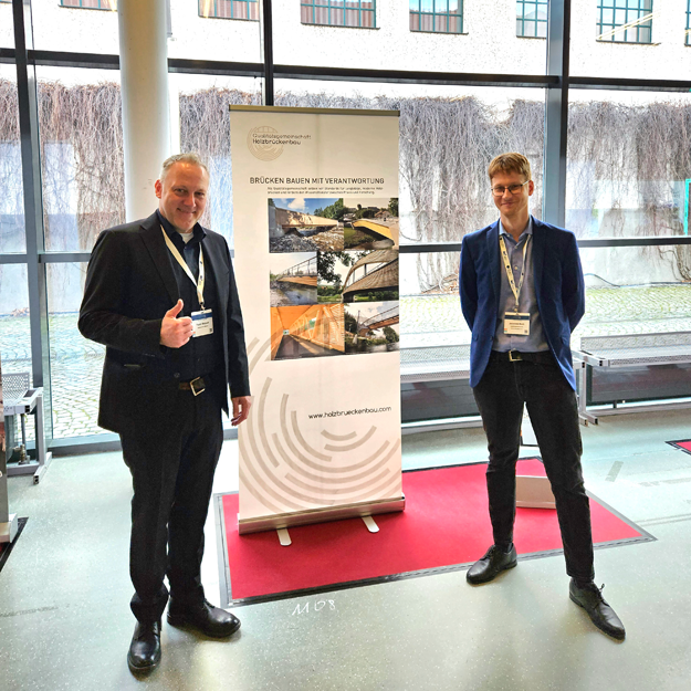 Am 18. und 19. März war die Qualitätsgemeinschaft Holzbrückenbau beim „35. Dresdner Brückenbausymposium“ vertreten. Wir sind aus der Komfortzone der Holzbauveranstaltungen herausgegangen und in die materialoffene Welt eingetaucht. Zum ersten Mal konnten wir zum Dresdner Brückenbausymposium auch erfahrene Stahl- und Betonbrückenbauer an unserem kleinen Stand für den großartigen Baustoff Holz begeistern. Vor den rund 1.700 Teilnehmenden konnte unser Vorstand Frank Miebach mit seinem Vortrag „Holz im Brückenbau – auf zu neuen Dimensionen im Straßenbrückenbau“ eindrücklich über die Möglichkeiten des modernen, geschützten Holzbrückenbaus referieren. Ein spannender Vortrag, der dem anwesenden Fachpublikum einige der aktuell innovativsten Projekte des Holz- und Holz-Beton-Verbundbrückenbaus näherbrachte.